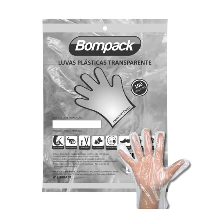 LUVA POLIETILENO BOMPACK 100UN